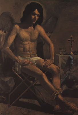 No conocía a este pintor y me ha encantado pues mezcla efebos con iconos. ¿qué más se puede pedir?. Con respecto a tu entrada del otro día, la narración que me sugería era la de un relato lleno de cortesanos, reyes que aman a sus coperos y almenas con estandartes al viento...