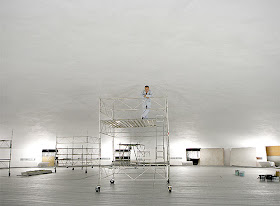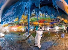 7. En esa foto en la que Barceló esta armando su intrincado trabajo, bajo la cúpula de la sala de DDHH en la ONU, parece un verdadero Miguel Ángel.