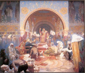 Esta pintura representa una ruptura con el examen de los principales acontecimientos de la historia eslava, y rinde homenaje a la iglesia griega, que conecta a los eslavos con el imperio Bizantino, en particular a través de las actividades misioneras de Cirilo y Metodio.