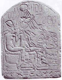 Estela de Akenatón junto a Nefertiti y dos de sus hijas adorando a Atón
