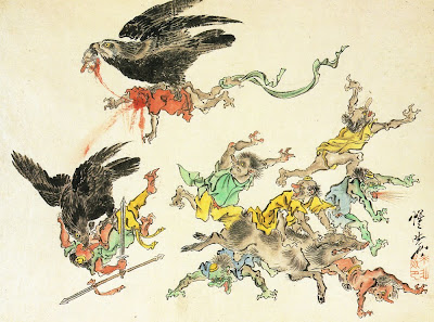Kawanabe Kyōsai (1831-1889), artista del periodo Meiji es conocido en Occidente por lo oscuro de sus ilustraciones, el cirujano escocés y coleccionista de arte japonés, William Anderson (1842-1900), le encargará un gran número de pinturas durante la década de 1870. Esta colección constituye, hoy en día, el núcleo de la pintura japonesa en el Museo Británico, incluido las que son objeto de esta entrada.