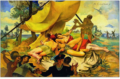 El pintor surrealista Alfred Courmes, cuyas provocadoras fantasías le valieron el apodo de "El Ángel de mal gusto". Era un genio de la subversión religiosas y un miembro altamente individualista de ese gran grupo de artistas que mostraron su irreverencia con ingenio y brillantez tanto en Francia como Italia y España, mediante obras que fueron a menudo inquietante y profundamente conmovedora. Delirios iconoclasta de Francis Picabia, la descripción de Alfred Jarry del camino hacia el Gólgota como un Tour de Francia y La Pasión como la escalada de una montaña, y el Manifiesto del ultraísta Guillermo de Torre (1921) con su invitación a la blasfemia.