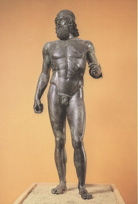 Es por ello que el hallazgo de la pareja de Riace supuso todo un acontecimiento, y que los dos «guerreros» entraran a formar parte de ese puñado de ejemplos originales, entre los que cabe destacar, sin duda al magnífico Auriga de Delfos, o al Dios del cabo Artemisio del Museo Arqueológico Nacional de Atenas. Estos escasos, pero valiosísimos ejemplos, nos permiten adentrarnos en el estudio directo de la escultura griega tal y como fueron ideadas por sus autores, sin la mediación obligada por su traslado al mármol.