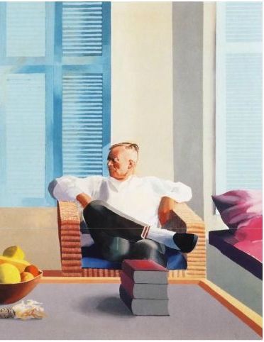 Y aquí tenemos este lienzo pintado por David Hockney en 1968, un lienzo en el que tenemos los retratos de Isherwood y Bachardy, la pareja de enamorados entre los cuales hay una amplia distancia, casi podemos afirmar que cada uno ocupa un extremo de la composición, una distancia que se nos antoja insalvable, ya que no hay nexo de unión entre ambas figuras, y si partimos el cuadro por la mitad, son dos retratos individualizados.