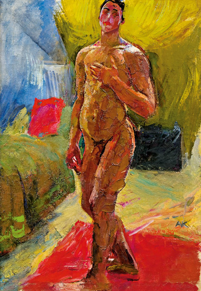 Anton Kolig (1886 - 1950) (nacido en Neutitschein, Moravia [ahora Novy Jicin, República Checa], 1 de julio de 1886, muerto en Nötsch, Carintia, 17 de mayo de 1950). Pintor austriaco. Estudió en Viena en la Escuela de Artes Aplicadas de 1904 a 1906, donde coincidió con Oskar Kokoschka, con quien compartirá el honor de ser los introductores del expresionismo en Austria. En 1907 continuó sus estudios en la Academia de Bellas Artes de Viena, donde conoció a Sebastián Isepp y Franz Wiegele, con cuya hermana Katharina se casaría en 1911. En la exposición de 1911 de la Federación Neukunstgruppe, en Hagen, su obra atrajo el interés de Klimt y Carl Moll, quienes le conseguirán arreglar una beca para Francia. A partir de 1913 se dedicará a viajar para finalmente establecerse en Cassis, cerca de Marsella, pero el estallido, en 1914, de la Primera Guerra Mundial, hace que él y su familia huyan de Francia, dejando gran parte de su obra allí, y regresando a Austria, estableciéndose en Nötsch, en la casa de su cuñado Franz Wiegele. En 1916 Anton Kolig realiza el servicio militar trabajando como pintor militar en Viena. En 1918 regresó a Nötsch. En los años veinte le ofrecen una cátedra en la Academia de Stuttgart, a donde se trasladó a Stuttgart junto con su familia. Durante este periodo se le otorgará la Medalla de Oro del "arte alemán" en la exposición de Düsseldorf de 1928 y el Premio del Estado Austriaco en 1936. En 1929 el gobierno de Carintia le encargó pintar los frescos de la Landhaus en Klagenfurt, los cuales junto con su mosaico en el en el Festspielhaus de Salzburgo serían retirados en 1938 tras la "Anschluss" (Anexión). Finalmente, en 1943, se establece en Nötsch tras haber perdido la cátedra de Stuttgart, al año siguiente un bombardeo le heriría gravemente tanto a él como a su mujer, a la vez que destruiría un tercio de su obra. En ese mismo bombardeo moriría el también pintor Franz Wiegele.
