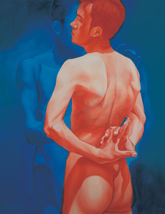 Wu Meng Chun (1973 Ciudad de Jinzhou, provincia de Liaoning, China) En casi todas las pinturas de "Wu Meng Chun", el artista se representa con los ojos cerrados, sin expresión o inmersos en sus propios sentimientos, de la forma más natural y carentes de cualquier artificio. No está allí para comunicarse con el espectador. Sencillamente está como un accidente más en un juego de contraposiciones que buscan el equilibrio de la forma más natural y sencilla, de la misma manera que discurre la vida